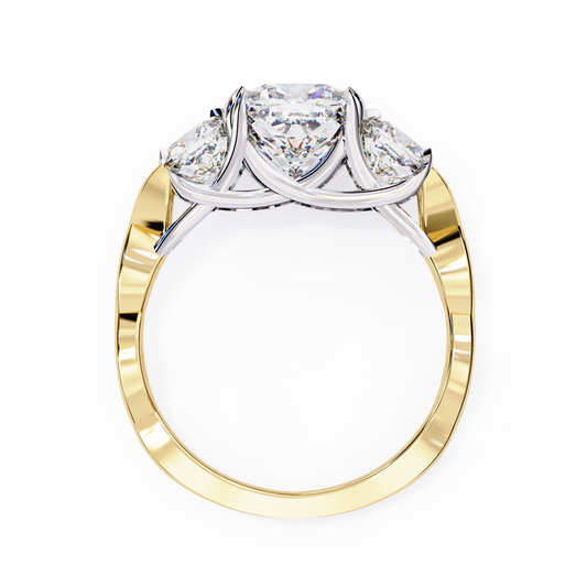 Emerald Baguette Tri-stone Engagement Ring Yellow