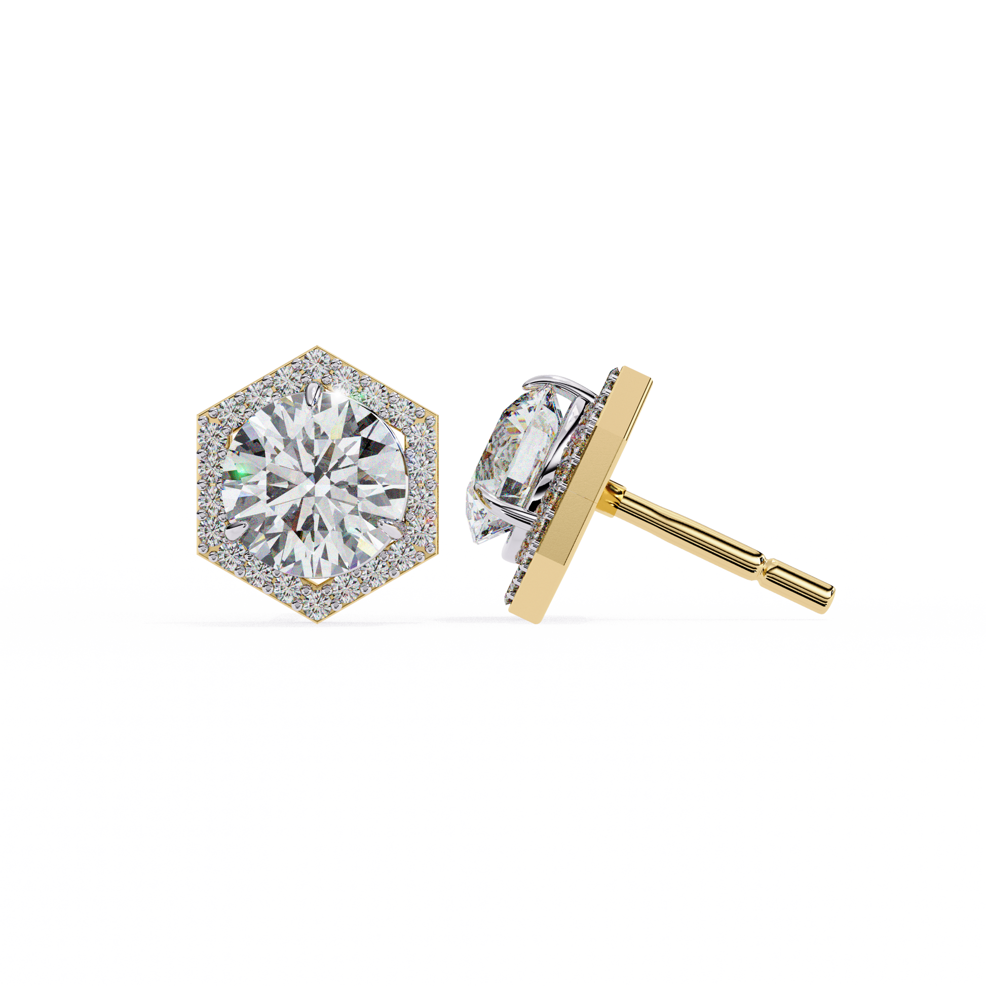 Round Solitaire Halo Earring Yellow